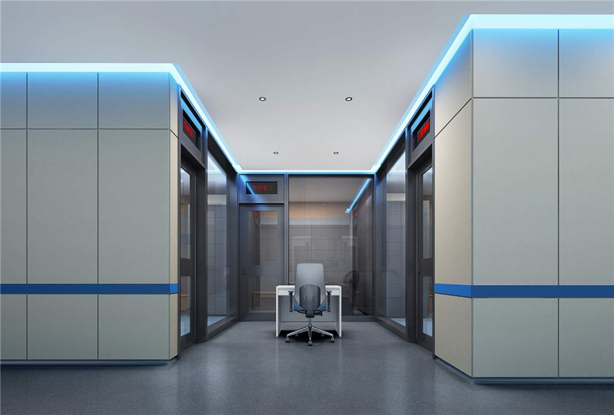 凱音審訊室防撞軟包是一種具備防撞、防火、阻燃、環(huán)保、隔音、吸音等多種功能為一體的功能性裝飾材料。表面飾面為防火布藝、防火皮革飾面或其他客戶所需定制飾面。其產品廣泛使用在電影院、會議室、紀委審訊室、審問室、辨認室、談話室、醒酒室等墻面裝飾。